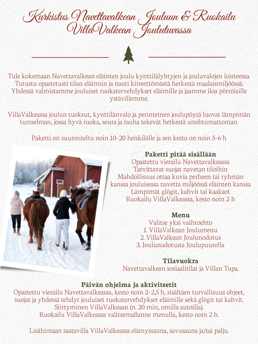 Pikkujouluohjelmaa, aktiviteetteja ja elämyksiä maalaismiljöössä