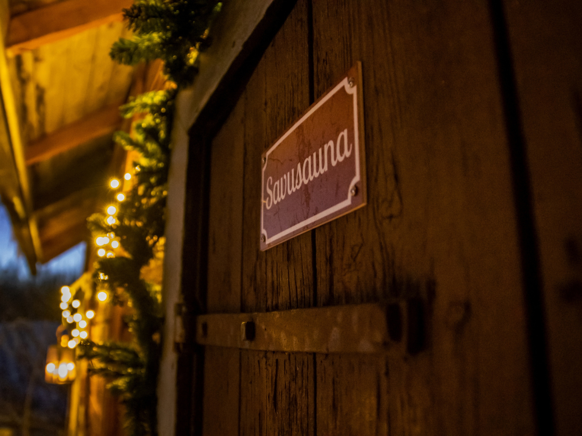 Savusauna lämpiää pihan laidalla, sinne kuljetaan tähtitaivaan alla, pakkasen paukkuessa ja kynttilöiden valaisten polkua. Lempeän lämpimässä savusaunassa pääsette nauttimaan joulun tunnelmasta hiljaisuuden keskellä.
